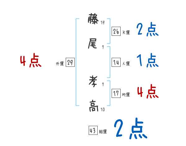 藤尾孝高さんの画数の鑑定結果