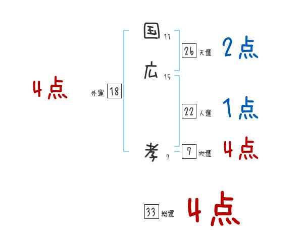 国広孝さんの画数の鑑定結果