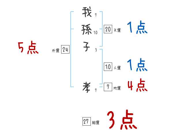 我孫子孝さんの画数の鑑定結果