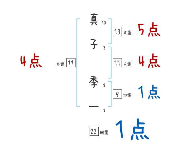 真子季一さんの画数の鑑定結果