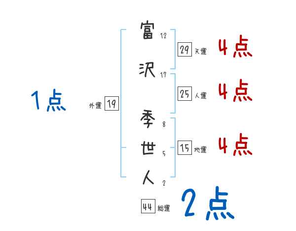 富沢季世人さんの画数の鑑定結果