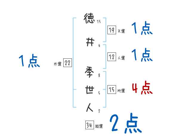 外運![]() | 徳井季世人さんの外運は22画の1つ星!努力することが苦手ないっぽう手先が器用。芸術性にも優れる。 生活面を象徴する運勢です。外部から受ける影響力を表し、結婚運、家庭運や職場、環境への順応性を表します。 |
