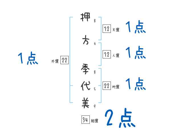 外運![]() | 押方季代美さんの外運は22画の1つ星!努力することが苦手ないっぽう手先が器用。芸術性にも優れる。 生活面を象徴する運勢です。外部から受ける影響力を表し、結婚運、家庭運や職場、環境への順応性を表します。 |
