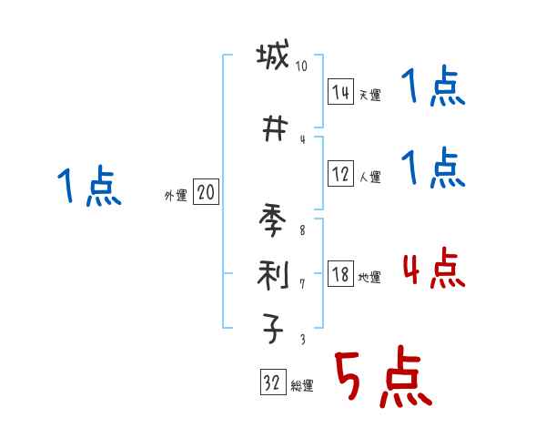 城井季利子さんの画数の鑑定結果