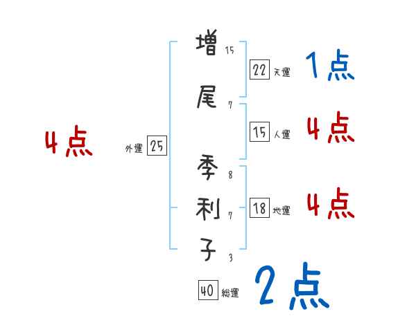 人運![]() | 増尾季利子さんの人運は15画の4つ星!人徳があり出世する。順調に物事を進め円満な人生。 性格や才能などを表す2番目に重要な運勢です。人間関係や協調性、社会的な成功に影響します。主に20歳から50歳ぐらいまでの中年期の運勢を表します。 |