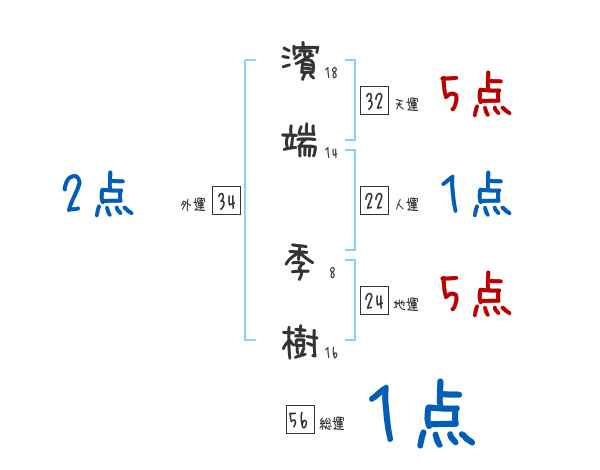 濱端季樹さんの画数の鑑定結果