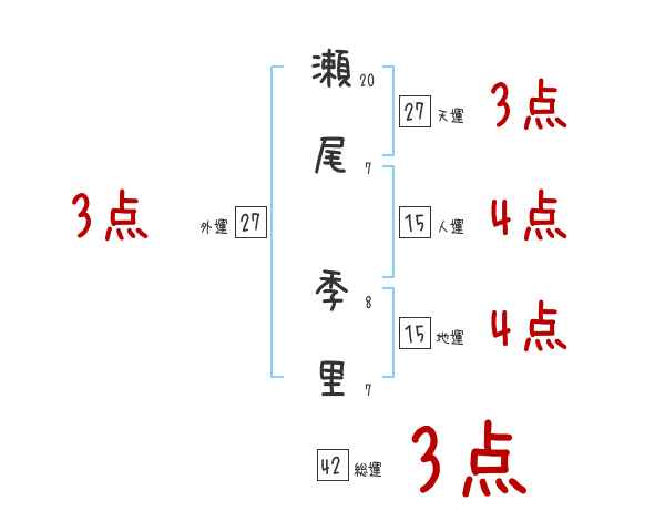 瀬尾季里さんの画数の鑑定結果