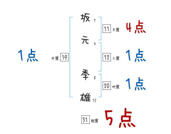 坂元季雄さんの画数の鑑定結果