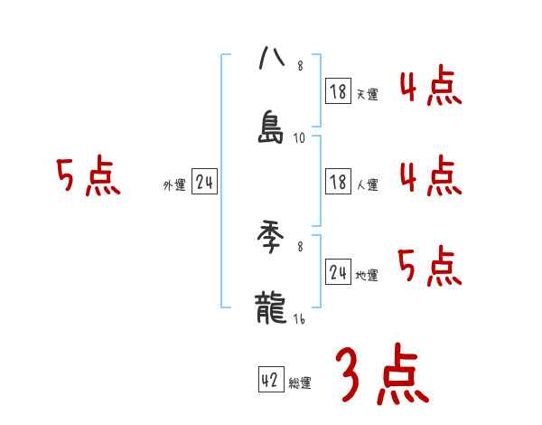 八島季龍さんの画数の鑑定結果