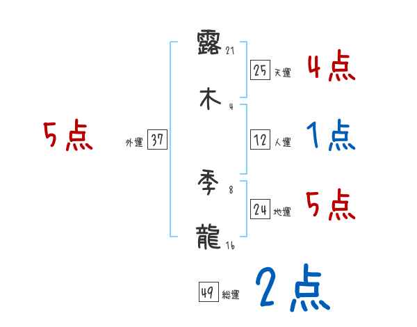 露木季龍さんの画数の鑑定結果