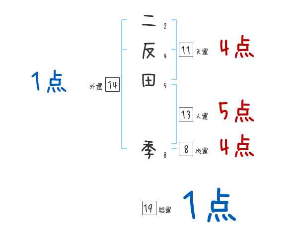 二反田季さんの画数の鑑定結果