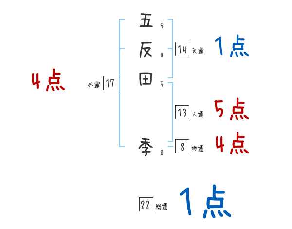 五反田季さんの画数の鑑定結果