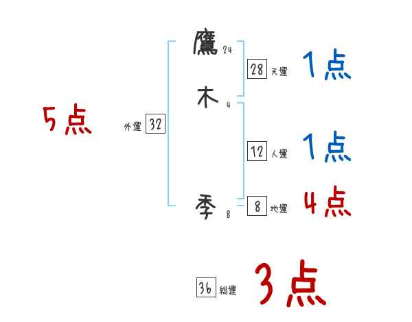 鷹木季さんの画数の鑑定結果