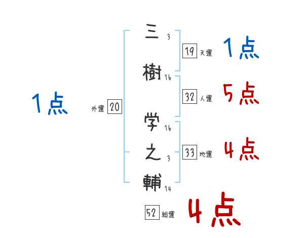 人運![]() | 三樹学之輔さんの人運は32画の5つ星!柔軟性があり成功する。チャンスが多く金運が良い。 性格や才能などを表す2番目に重要な運勢です。人間関係や協調性、社会的な成功に影響します。主に20歳から50歳ぐらいまでの中年期の運勢を表します。 |
