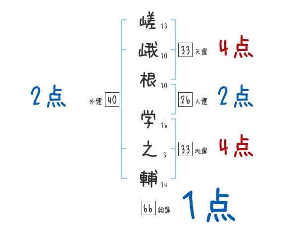 嵯峨根学之輔さんの画数の鑑定結果