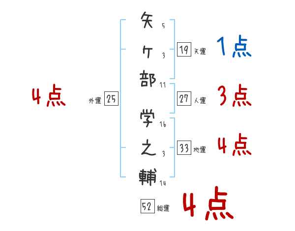 地運![]() | 矢ヶ部学之輔さんの地運は33画の4つ星!権力志向でプライドが高い。勇気があり運を切り開き成功する。 個性を表す基礎的な運勢です。性格形成や対人関係、行動力など家庭環境に影響されます。主に誕生してから20歳くらいまでの若年期の運勢を表します。 |