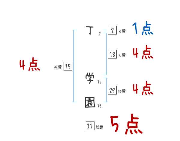 丁学園さんの画数の鑑定結果