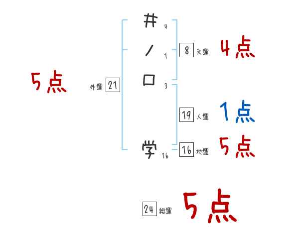 地運![]() | 井ノ口学さんの地運は16画の5つ星!人望が厚く大きく発展する。逆転成功が見える。 個性を表す基礎的な運勢です。性格形成や対人関係、行動力など家庭環境に影響されます。主に誕生してから20歳くらいまでの若年期の運勢を表します。 |