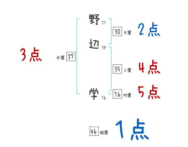 野辺学さんの画数の鑑定結果