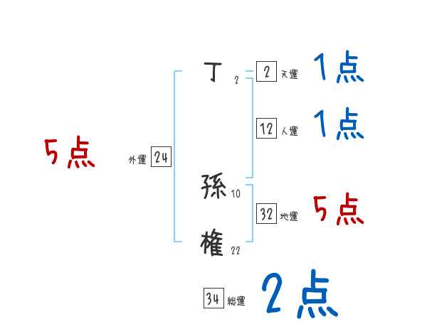 丁孫権さんの画数の鑑定結果