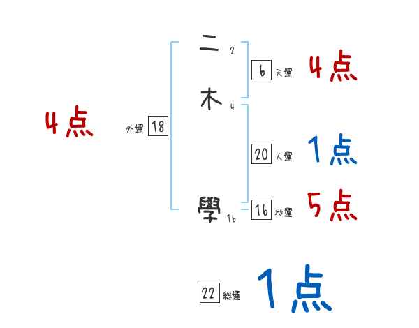 外運![]() | 二木學さんの外運は18画の4つ星!情熱的で剛気。忍耐力があり信頼される。 生活面を象徴する運勢です。外部から受ける影響力を表し、結婚運、家庭運や職場、環境への順応性を表します。 |