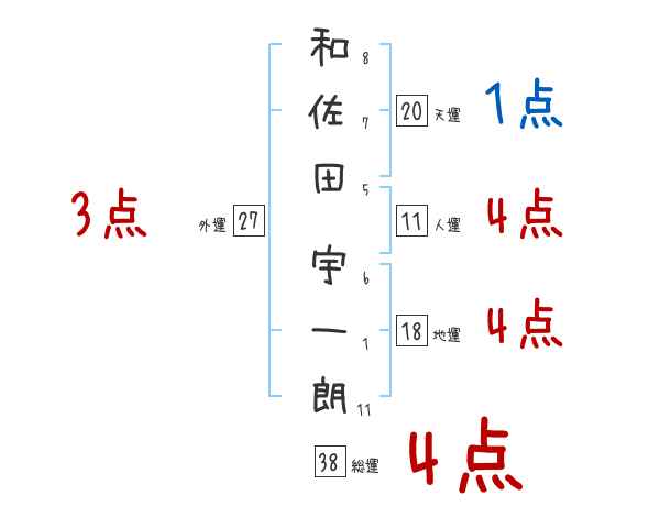 総運![]() | 和佐田宇一朗さんの総運は38画の4つ星!温厚な性格で技術的な才能を発揮する。職人的な仕事に向いている。 あなたの人生を表す1番重要な運勢です。生涯を通じて影響する総合運となり、主に50歳以降の晩年期に影響を及ぼします。 |