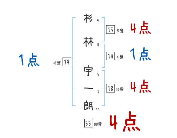 杉林宇一朗さんの画数の鑑定結果