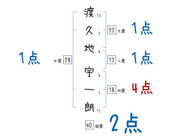 渡久地宇一朗さんの画数の鑑定結果