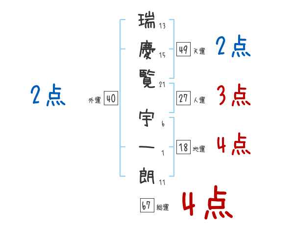 瑞慶覧宇一朗さんの画数の鑑定結果