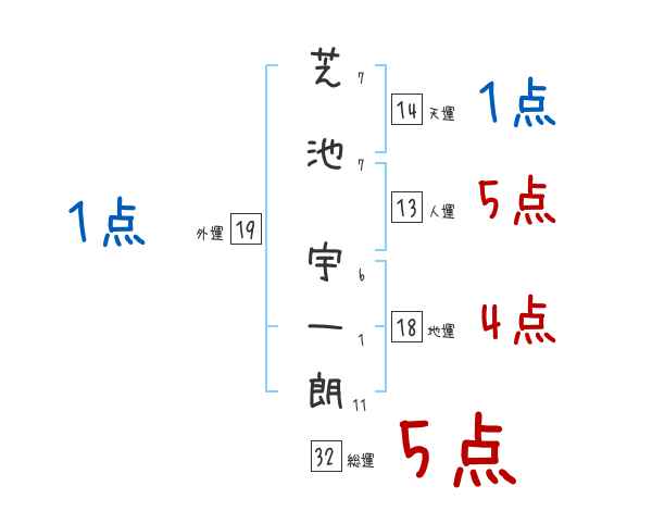 総運![]() | 芝池宇一朗さんの総運は32画の5つ星!柔軟性があり成功する。チャンスが多く金運が良い。 あなたの人生を表す1番重要な運勢です。生涯を通じて影響する総合運となり、主に50歳以降の晩年期に影響を及ぼします。 |