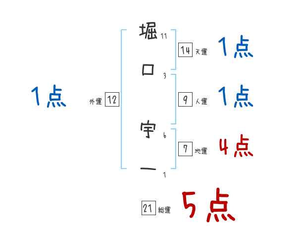 天運![]() | 堀口宇一さんの天運は14画の1つ星!人に対して優しいがストレスを溜め込みがち。人間関係のトラブルを避けるよう気をつけましょう。 家系が持つ宿命的な運勢を表します。祖先から受け継いだ苗字ですので自分の力が及びません。家柄を象徴します。 |