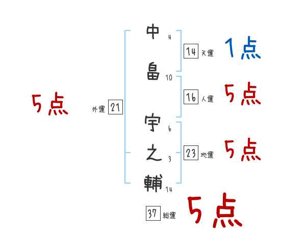 中畠宇之輔さんの画数の鑑定結果