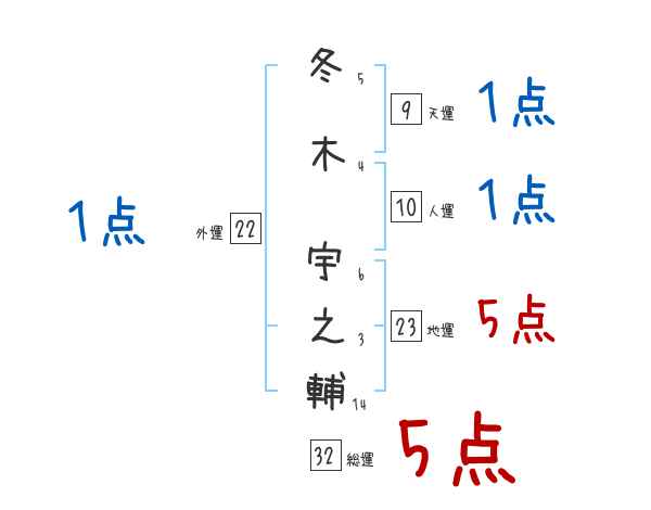 天運![]() | 冬木宇之輔さんの天運は9画の1つ星!消極的で才能を発揮することが苦手なことも。周りの意見に耳を傾けましょう。 家系が持つ宿命的な運勢を表します。祖先から受け継いだ苗字ですので自分の力が及びません。家柄を象徴します。 |