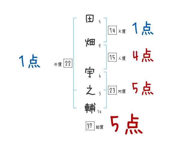天運![]() | 田畑宇之輔さんの天運は14画の1つ星!人に対して優しいがストレスを溜め込みがち。人間関係のトラブルを避けるよう気をつけましょう。 家系が持つ宿命的な運勢を表します。祖先から受け継いだ苗字ですので自分の力が及びません。家柄を象徴します。 |