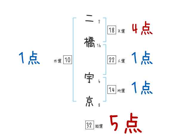 二橋宇京さんの画数の鑑定結果
