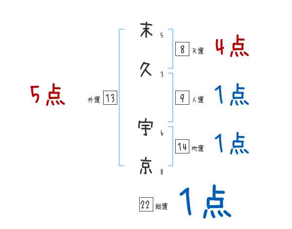 天運![]() | 末久宇京さんの天運は8画の4つ星!勤勉家。根気強く努力し成功する。忍耐力がある。 家系が持つ宿命的な運勢を表します。祖先から受け継いだ苗字ですので自分の力が及びません。家柄を象徴します。 |