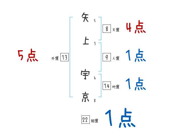 矢上宇京さんの画数の鑑定結果