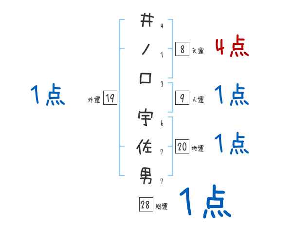 総運![]() | 井ノ口宇佐男さんの総運は28画の1つ星!家庭環境に注意。スポーツで活躍できる能力があるかも。 あなたの人生を表す1番重要な運勢です。生涯を通じて影響する総合運となり、主に50歳以降の晩年期に影響を及ぼします。 |