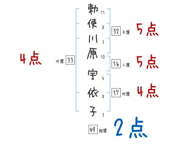 勅使川原宇依子さんの画数の鑑定結果