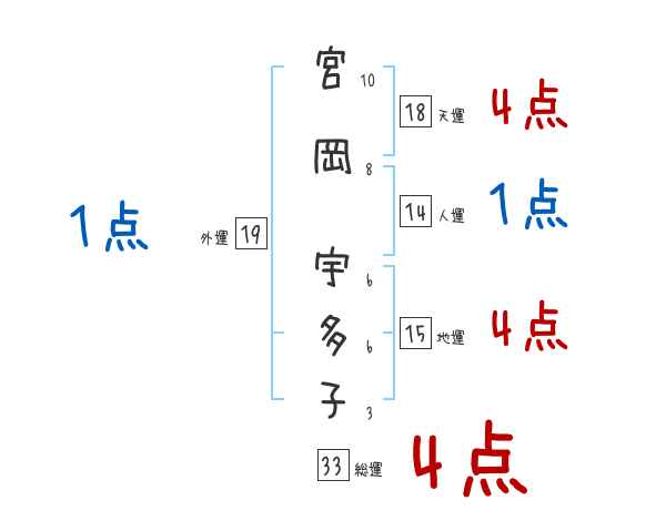 宮岡宇多子さんの画数の鑑定結果