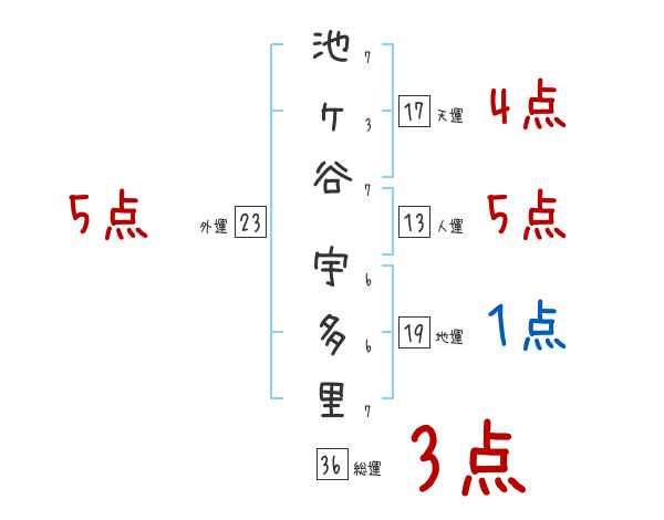 池ヶ谷宇多里さんの外運は23画の5つ星