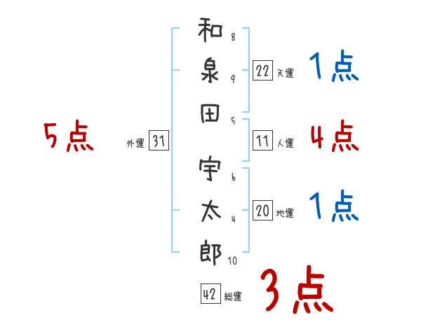 総運![]() | 和泉田宇太郎さんの総運は42画の3つ星!病気に注意。多芸であるが消極的でおとなしい。 あなたの人生を表す1番重要な運勢です。生涯を通じて影響する総合運となり、主に50歳以降の晩年期に影響を及ぼします。 |