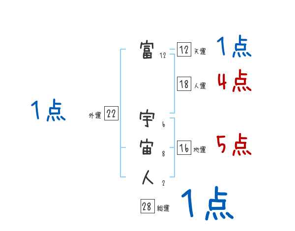 富宇宙人さんの画数の鑑定結果