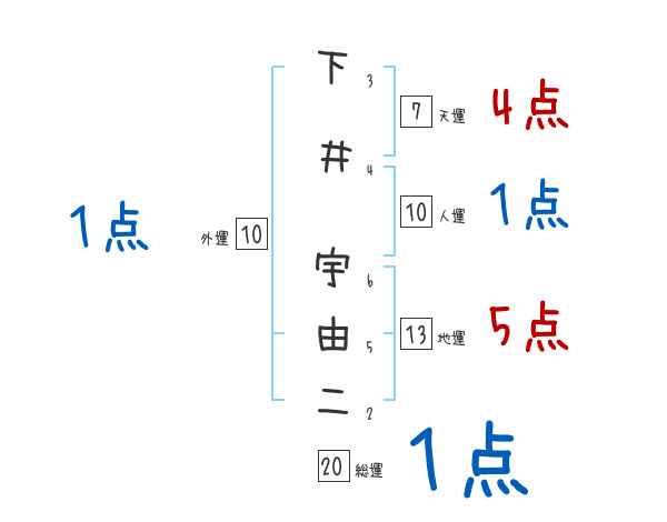 家系が持つ宿命的な運勢を表します。祖先から受け継いだ苗字ですので自分の力が及びません。家柄を象徴します。