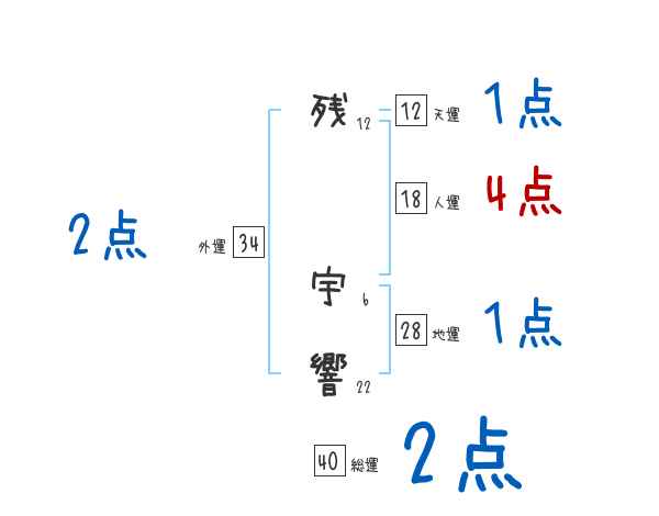 残宇響さんの画数の鑑定結果