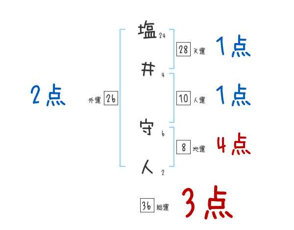 塩井守人さんの画数の鑑定結果