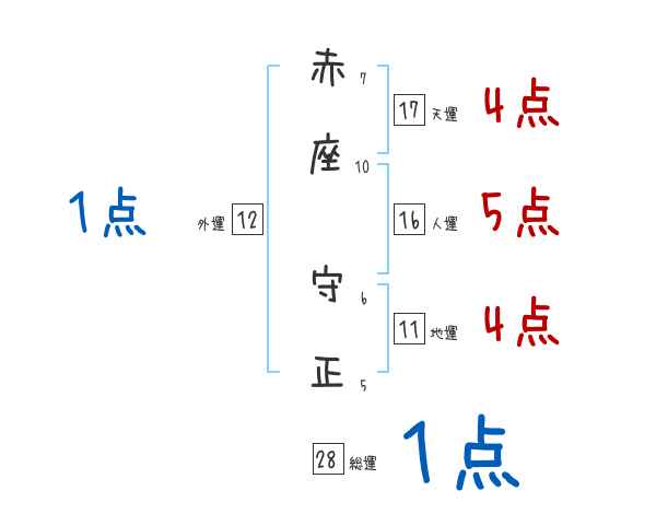 赤座守正さんの画数の鑑定結果