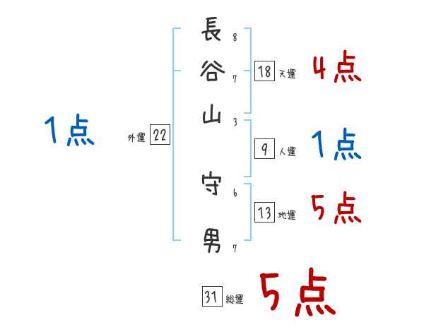 長谷山守男さんの画数の鑑定結果