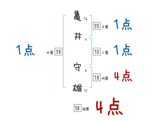 亀井守雄さんの画数の鑑定結果