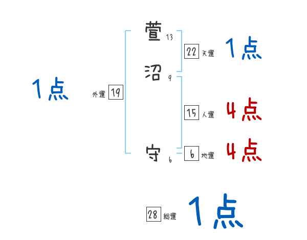 萱沼守さんの画数の鑑定結果